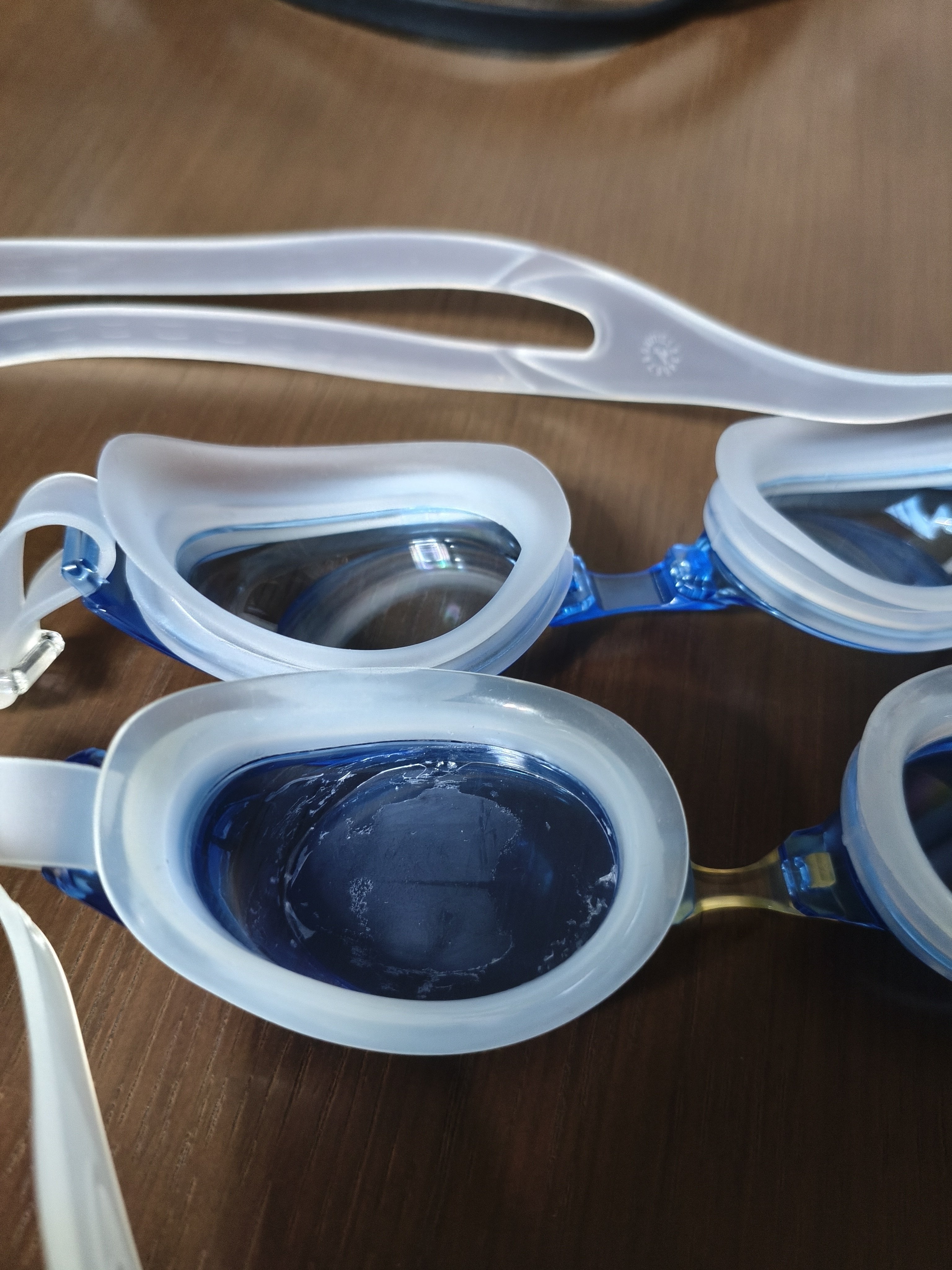 青いレンズなら、プールの床や壁がくすんでいても、キレイな感じがして、気分的に自分を騙せるようです。別に潔癖症でもないですが、気分的な問題は退屈な1時間の泳ぎでは重要なファクターです。
