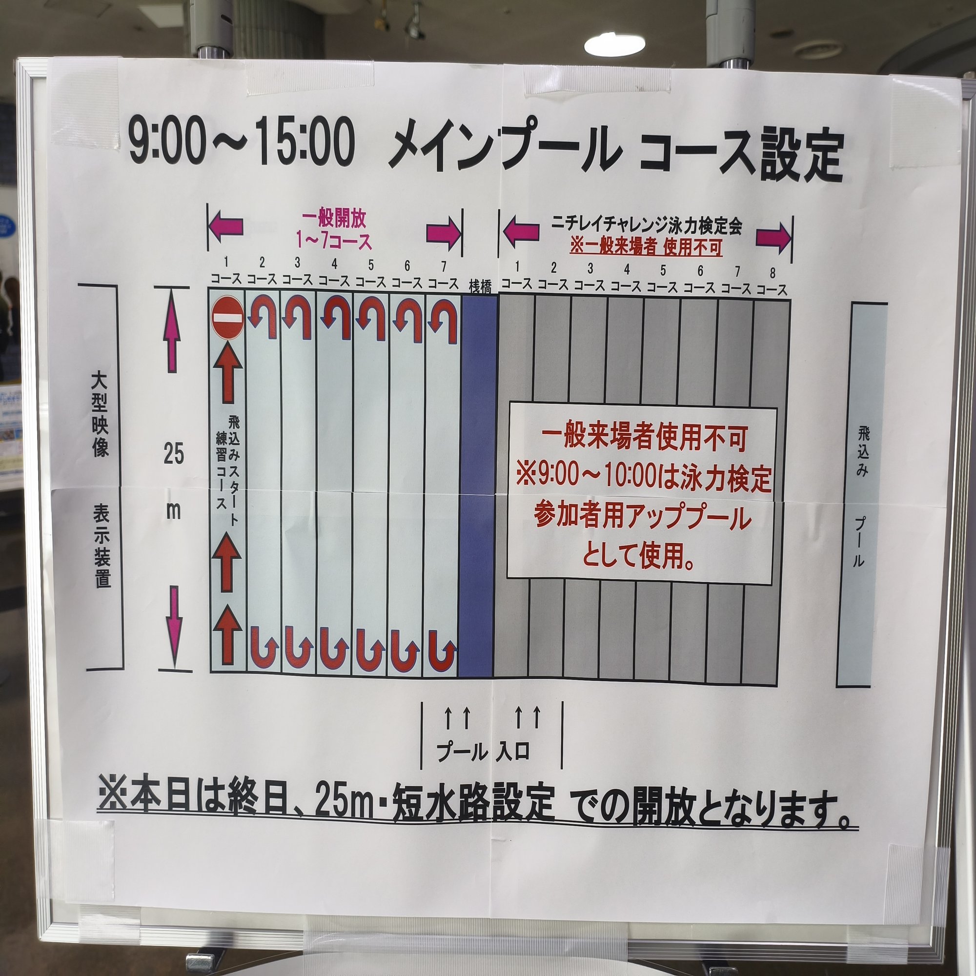 コース割り当て図。メインプールを横方向に使用するようです。Youtubeの動画で把握していました。